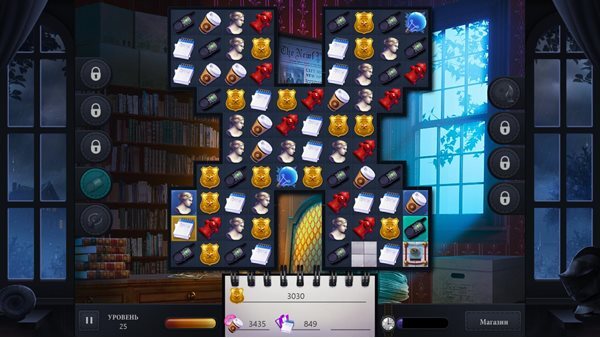 В знаменитом музее происходит дерзкое ограбление, и на место событий прибывает детектив Джун Барнетт. У неё нет улик и подозреваемых, лишь слухи и догадки о зловещем проклятии. Это дело обещает стать самым запутанным в её карьере. Испытайте свои навыки сыщика и разгадайте загадку проклятого артефакта в захватывающей игре три-в-ряд с детективным сюжетом! В игре также много мини-игр: японский кроссворд, пасьянс, найдите отличия, сложите фрагменты и многое другое!